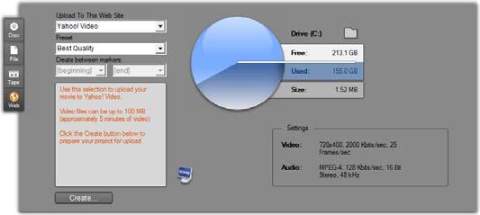 Studio can upload your video directly to either Yahoo!, Video or YouTube, for sharing with a potential audience of millions of other Internet users.